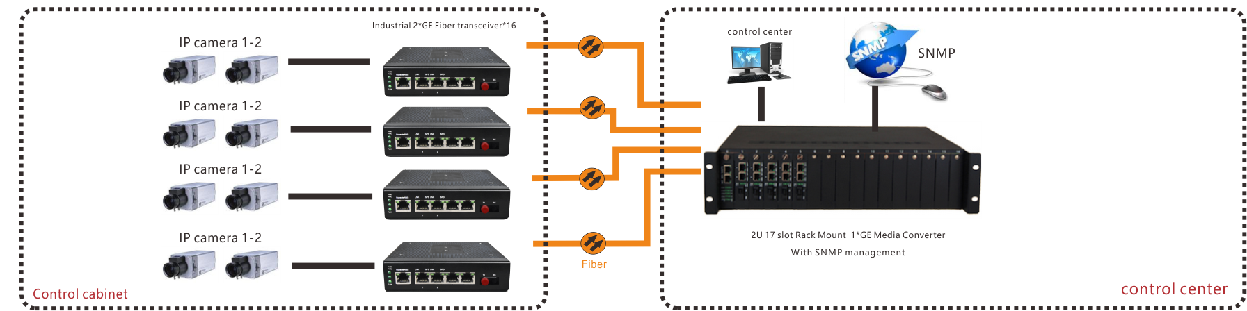 Ethernet switch chip +FPGA scheme based on OAM frame with remote management function support Console  /WEB/Independent SNMP Manager and 2U can also be inserted with SNMP network 1*GE optical transceiver card 1 electrical interconnection energy management to the equipment in SNMP software;