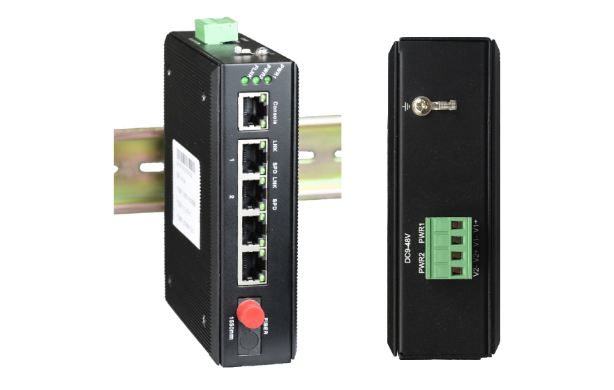 This series of products are industrial grade conversion between 2*10/100/1000base-T and 1000base-X twisted pair fiber media or extended network transmission fiber conversion optical fiber network is mainly used for long-distance transmission (20/40/60/80/100 km). This product provides 1 Gigabit ports 2 Gigabit Ethernet port. The utility model has the advantages of perfect alarm function stable and reliable work low power consumption high integration degree and small size.