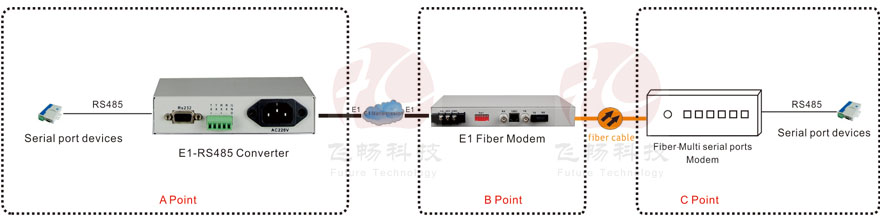 This interface converter is based on FPGA, providing one E1 interface and one RS485 serial interface, 1Channel RS485 transmission via E1 interface. The product breaks through contradictions between traditional serial interface communication distance and communication rate, besides, it also can solve electromagnetic interference, ground ring interference and lightning damage. The device greatly improves reliability, security and confidentiality of data communication. It is widely used for various industrial control, process control and traffic control occasions, especially for Bank, and Power and other sectors and systems which have special requirements of electromagnetic interference environment. Serial interface communication rate is up to 921.6KBPS.