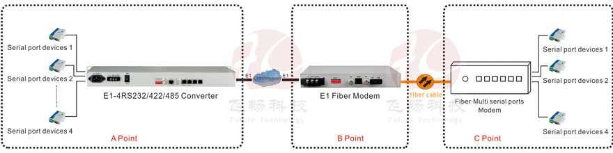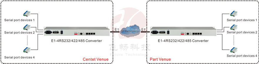 This interface converter is based on FPGA, providing 4Channel RS232/485/422 transmission on E1 interface. The product breaks through contradictions between traditional serial interface communication distance and communication rate, besides, it also can solve electromagnetic interference, ground ring interference and lightning damage. The device greatly improves reliability, security and confidentiality of data communication. It is widely used for various industrial control, process control and traffic control occasions, especially for Bank, and Power and other sectors and systems which have special requirements of electromagnetic interference environment. RS232/RS485/RS422 channel can transmit adaptable serial data asynchronously 0Kbps-57600Kbps baud rate.