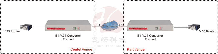 This interface converter provides one E1 interface and one V.35 interface to achieve framed E1 interface transferring to V.35 interface. The data channel rate is 2.048Mbps. The device has inter-set loop test function to facilitate the project launching and daily maintenance.