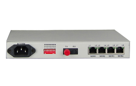 8RS232/485/422 Fiber Modem provides 8Channel RS232/485/422 transmission on fiber. The product breaks through contradictions between traditional serial interface communication distance and communication rate, besides, it also can solve electromagnetic interference, ground ring interference and lightning damage. The device greatly improves reliability, security and confidentiality of data communication. It is widely used for various industrial control, process control and traffic control occasions, especially for Bank, and Power and other sectors and systems which have special requirements of electromagnetic interference environment. RS232/RS485/RS422 channel can transmit adaptable serial data asynchronously 0Kbps-115200Kbps baud rate.