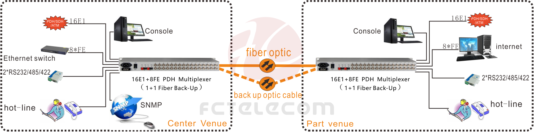 16E1+8FE PDH Multiplexer(1+1 Fiber Back-Up)