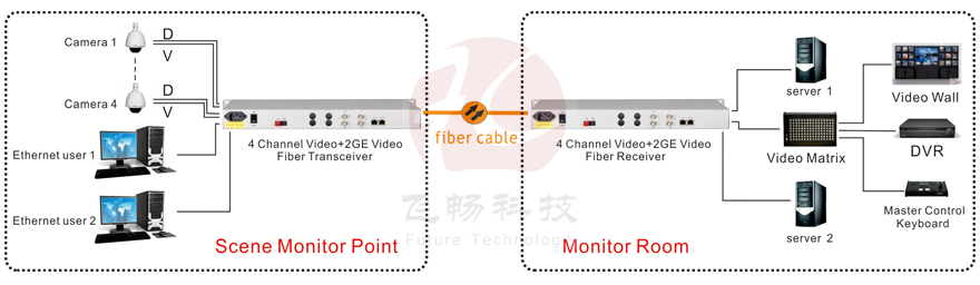 4 video + 1000M Ethernet optical transmitter / receiver uses digital coding technology, the video signal, 2 10/100 / 1000Base-T twisted pair signals, data signals, audio signals and digital signals through a single mode fiber to achieve long-range two-way transmission, professional designed to be compatible with Philips, AD, Vicon, Pelco, and other control systems. Video multi-multiplexed optical transmitter / receiver optical module and the core circuit are made of imported components, high stability, all the optical and electrical interfaces are international standards, adjustment-free installation for different working environment.