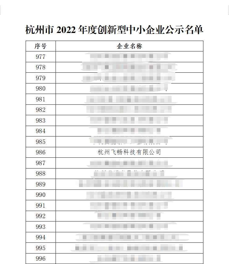 熱烈慶祝杭州飛暢科技有限公司榮獲2022年度創(chuàng)新型中小企業(yè)稱號(hào)!