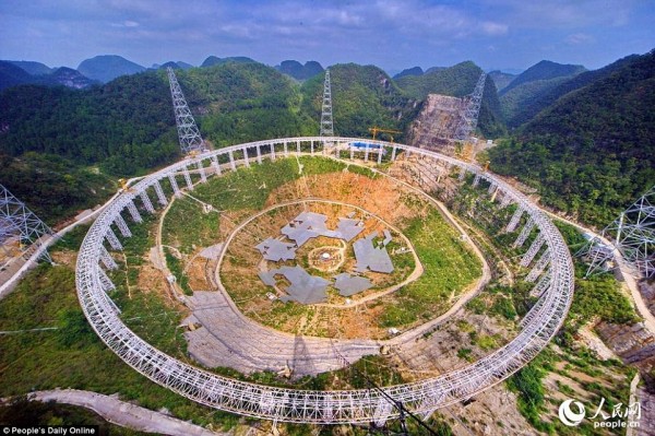 其實(shí),接收宇宙無(wú)線電波的現(xiàn)實(shí)版“紅岸基地”,正在貴州省平塘縣克度鎮(zhèn)金科村“大窩凼”洼地建設(shè)。當(dāng)前世界最大單口徑射電望遠(yuǎn)鏡“天眼”(FAST)建設(shè)項(xiàng)目已進(jìn)入沖刺階段。建成后,這架500米口徑的球面射電望遠(yuǎn)鏡接收面積相當(dāng)于30個(gè)足球場(chǎng)。