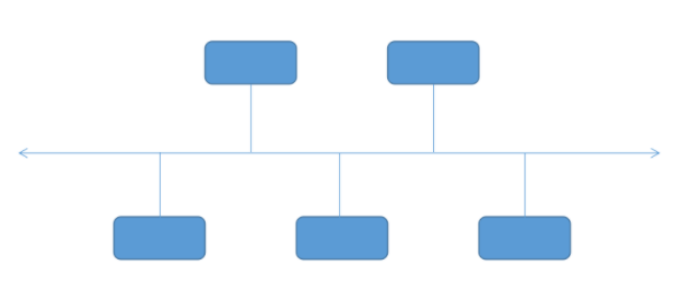 總線拓撲結構是將網(wǎng)絡中的各個節(jié)點設備用“一根總線”連接起來,實現(xiàn)計算機網(wǎng)絡的功能。任何連接在總線上的設備都能在總線上發(fā)信號,并且所有設備都能接收信號。總線型拓撲結構圖如下: