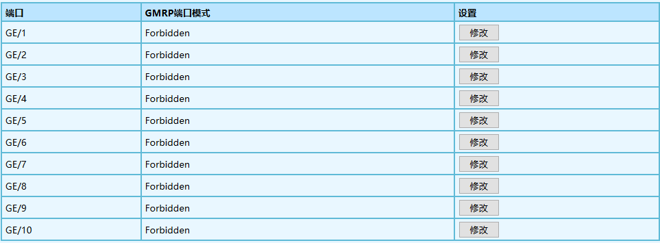 2.在[GMRP 端口設(shè)置]界面中可以查看 GMRP 的端口配置,如下圖所示。