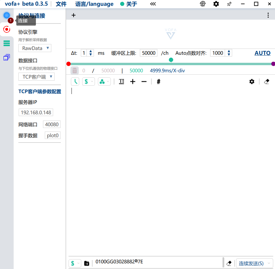 4. 運行“調(diào)試助手”軟件,在TcpClient選項框中查看主機PC接收到的串口信息。同理,主機PC也可向串口設(shè)備發(fā)送信息。