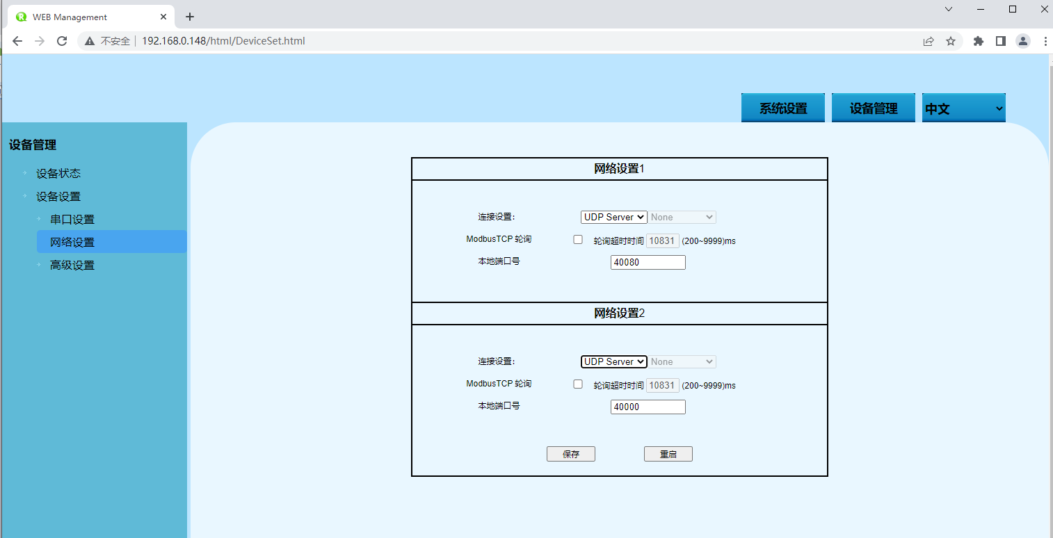 4、(可選)選擇“系統(tǒng)設(shè)置 > 保存設(shè)置 > 保存設(shè)置”,單擊“保存設(shè)置”按鈕,可避免因重啟設(shè)備導(dǎo)致參數(shù)丟失。