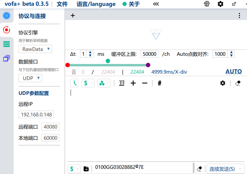 3、在“遠程IP”文本框中輸入串口服務(wù)器(即Udp服務(wù)器)的IP地址“192.168.0.148”。