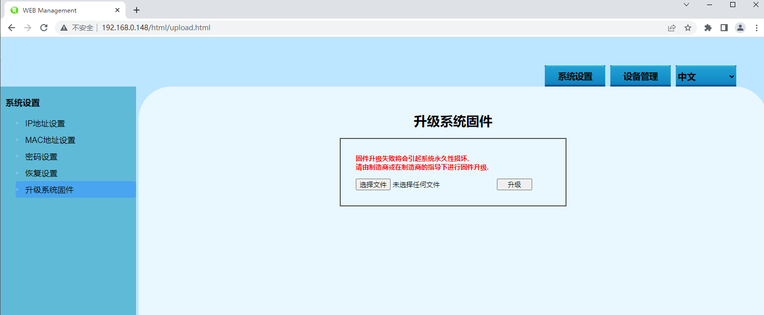 | 恢復出廠設置 | 單擊此按鈕,設備將失去所有現(xiàn)有配置,恢復為出廠配置。 |