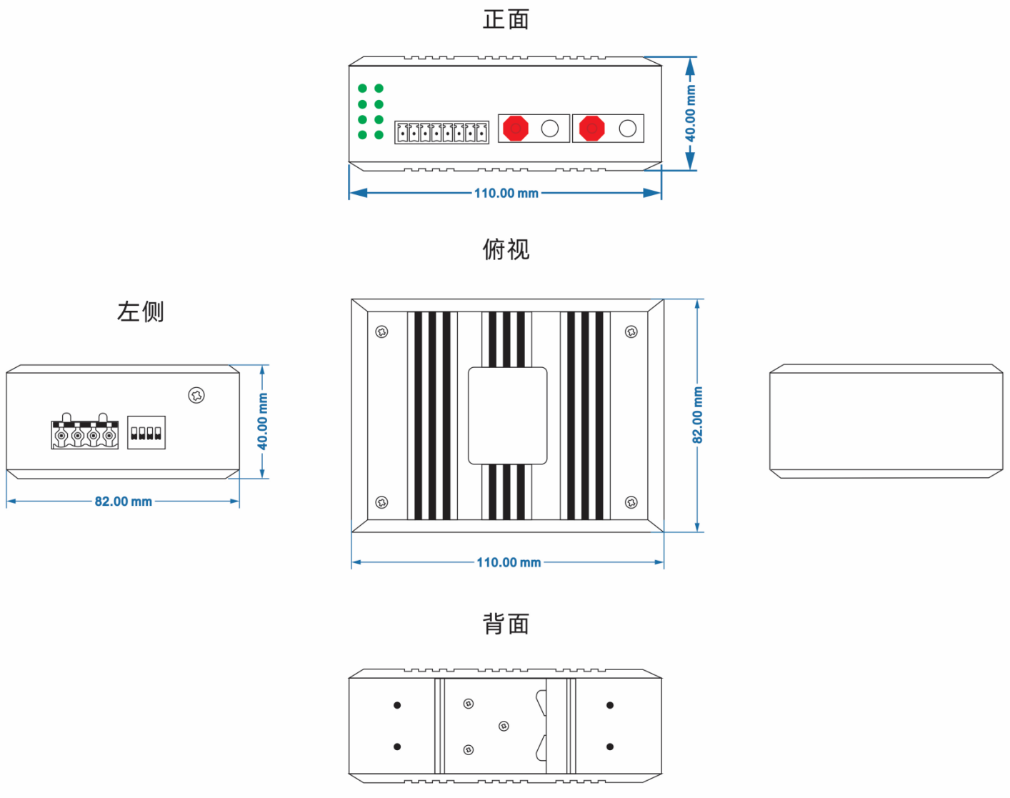 鋁合金陽(yáng)極氧化外殼,IP40防護(hù)等級(jí),能夠經(jīng)受住惡劣環(huán)境的考驗(yàn);