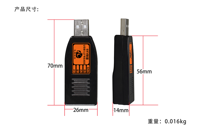 工業(yè)級(jí) 6KV防雷型 USB轉(zhuǎn)2路高速RS485轉(zhuǎn)換器