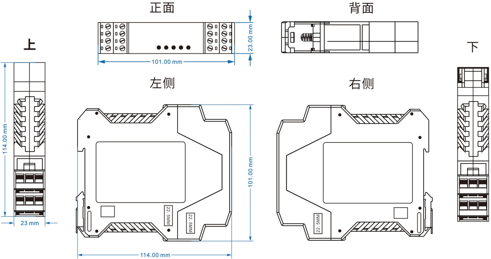 電源輸入DC5-70V ,功耗<1W 過載保護(hù):支持;反接保護(hù):支持; 接入端子:3芯5.08mm間距端子 |