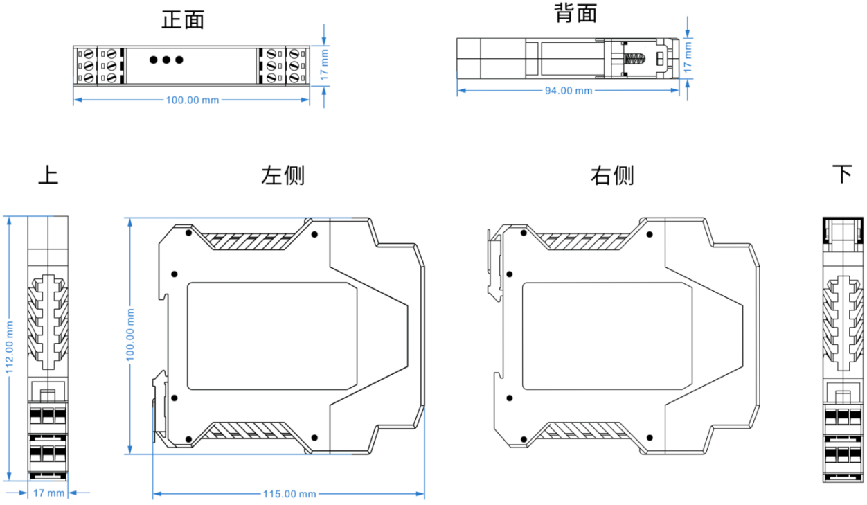電源輸入DC5-70V ,功耗<1W 過載保護(hù):支持;反接保護(hù):支持; 接入端子:3芯5.08mm間距端子 |