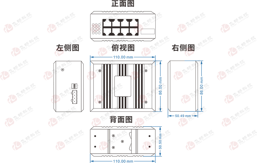• 飛暢科技-mini工業(yè)軌式8路百兆電交換機