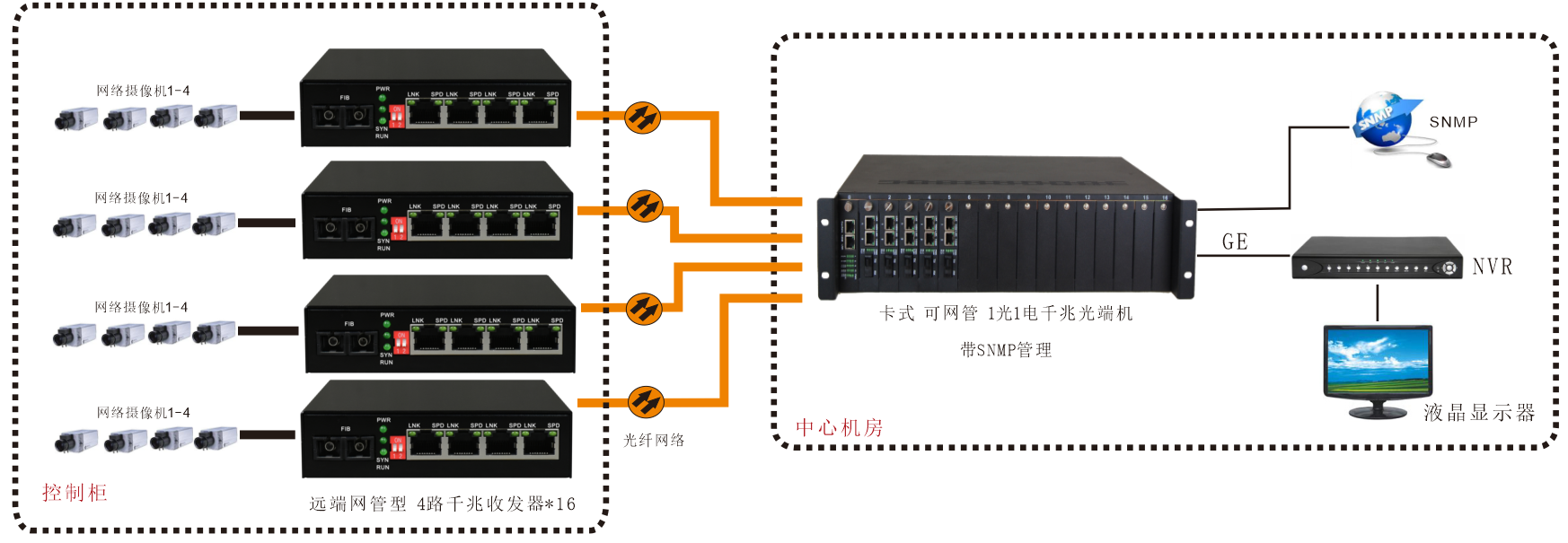 可遠(yuǎn)端管理型4路千兆光纖收發(fā)器 電源內(nèi)置型