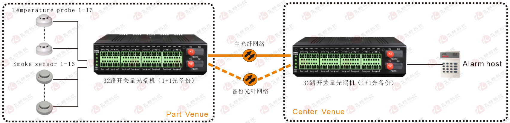 | 產(chǎn)品功能描述 | 工業(yè)軌式 32路開關(guān)量 1+1光纖備份光端機 |