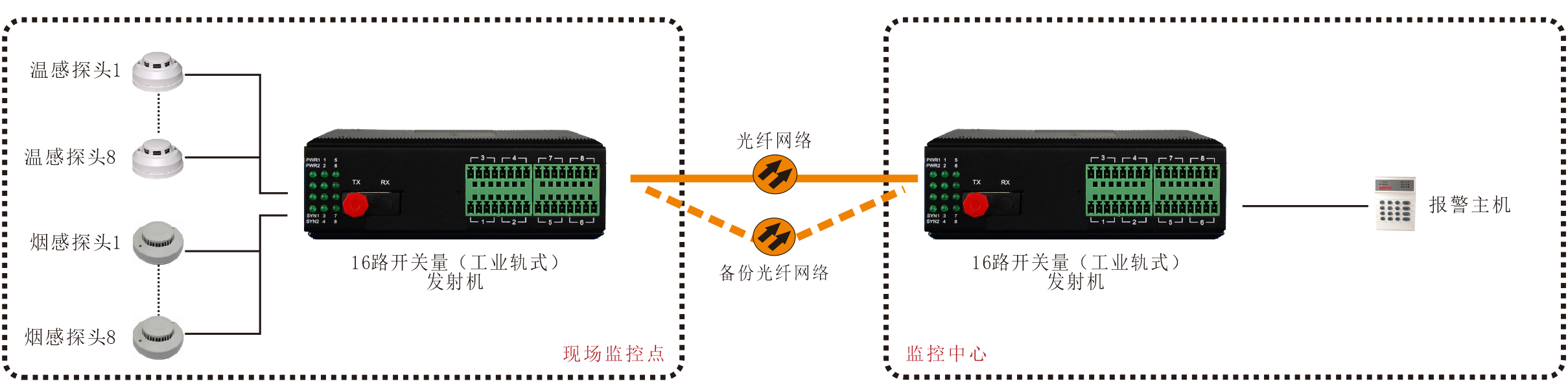 產(chǎn)品功能描述 提供1-16路單向開關(guān)量或8路雙向開關(guān)量在1+1備份光纖中傳輸,工業(yè)軌式
